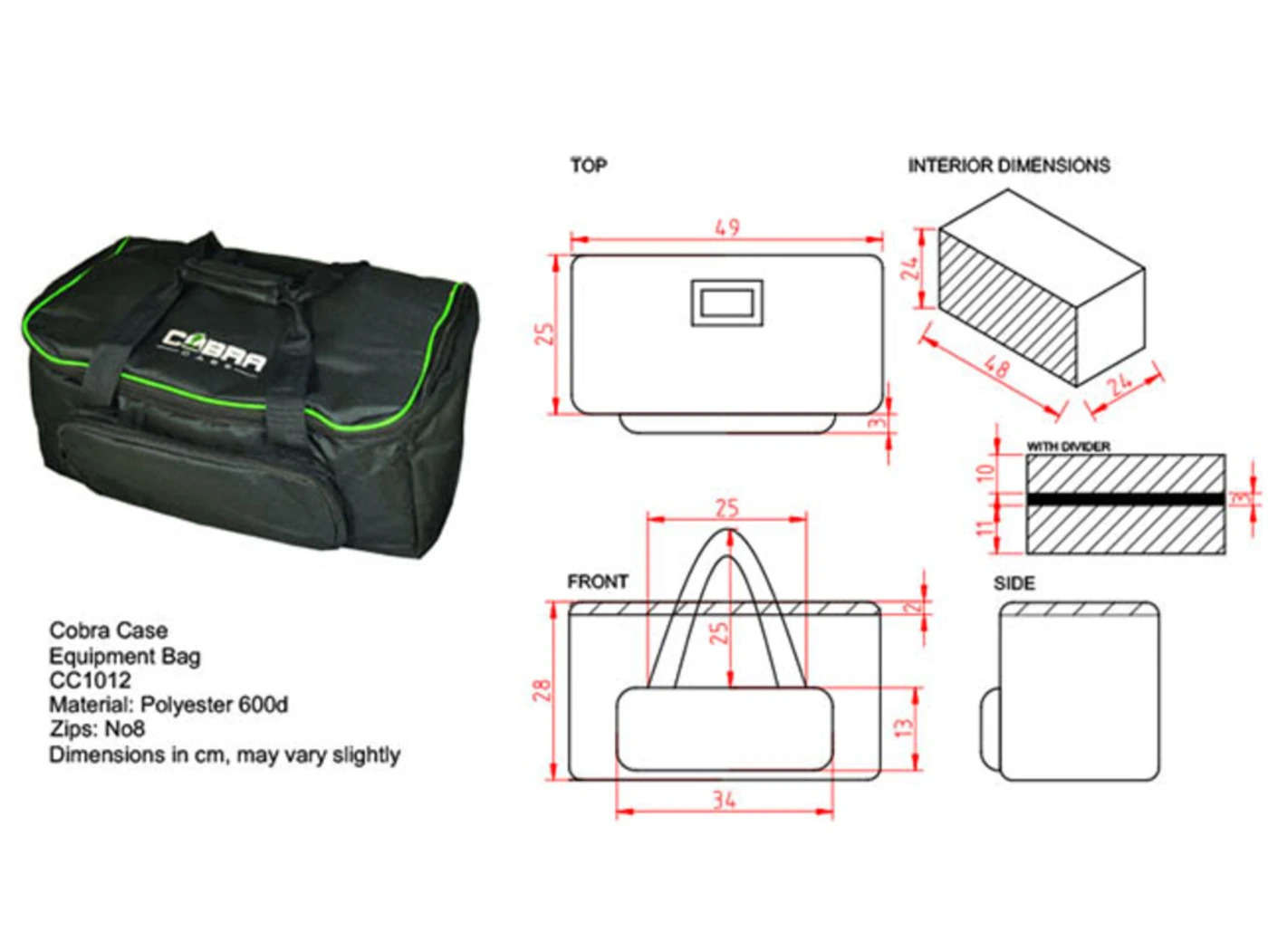 A large equipment bag designed primarily for lighting effects, but versatile enough for protecting a wide range of gear, from cameras to power tools. Constructed from durable nylon with heavy-duty zips, it features an external zip pocket for accessories and small parts. Also includes a removable internal divider for flexible storage and a convenient address label pocket.