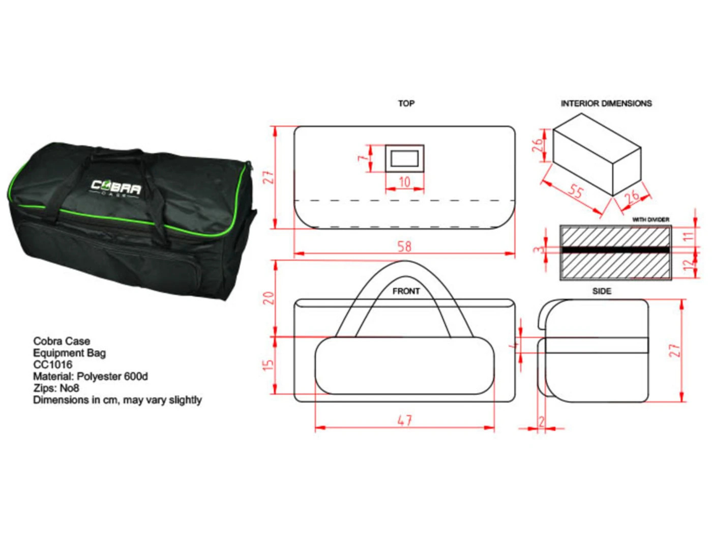 A sturdy, padded transport bag suitable for protecting a wide range of equipment, including lighting and audio gear. Constructed from durable nylon with robust zips, it includes an external zip pocket for accessories and small items, a removable internal divider, and a convenient address label pocket.