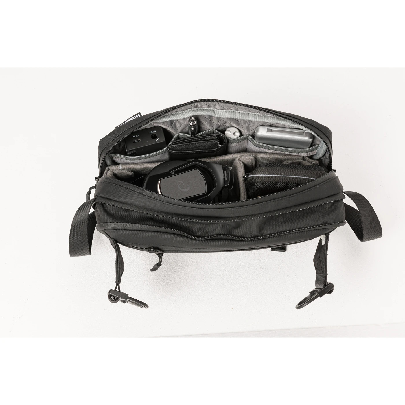 It securely holds essentials like headphones, USB drives, power banks, cameras, and personal items with a smart internal layout featuring multiple compartments, two quick-access exterior pockets, and padded, removable dividers for customizable protection.
