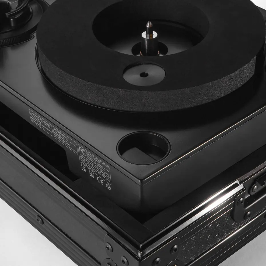 - Foam padding in the lid holds turntable and platter securely for maximum transport protection