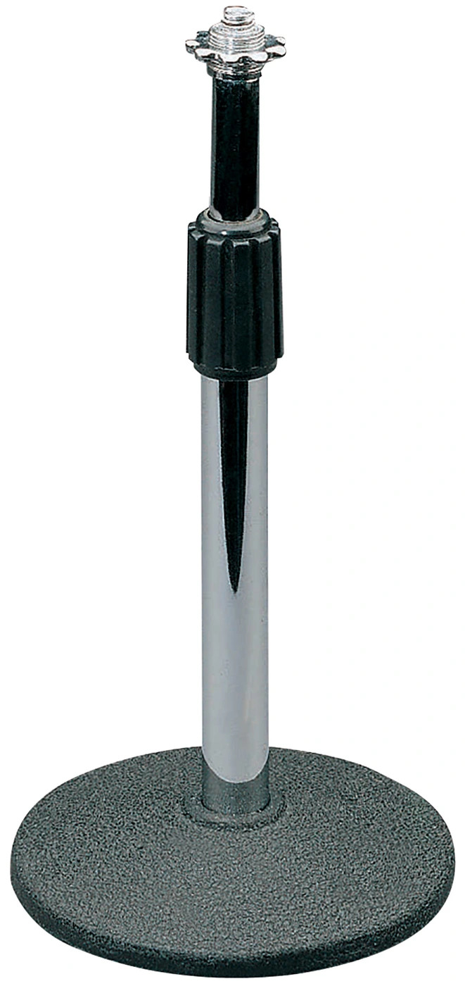 Telescopic desktop stand with a heavy, sturdy base.