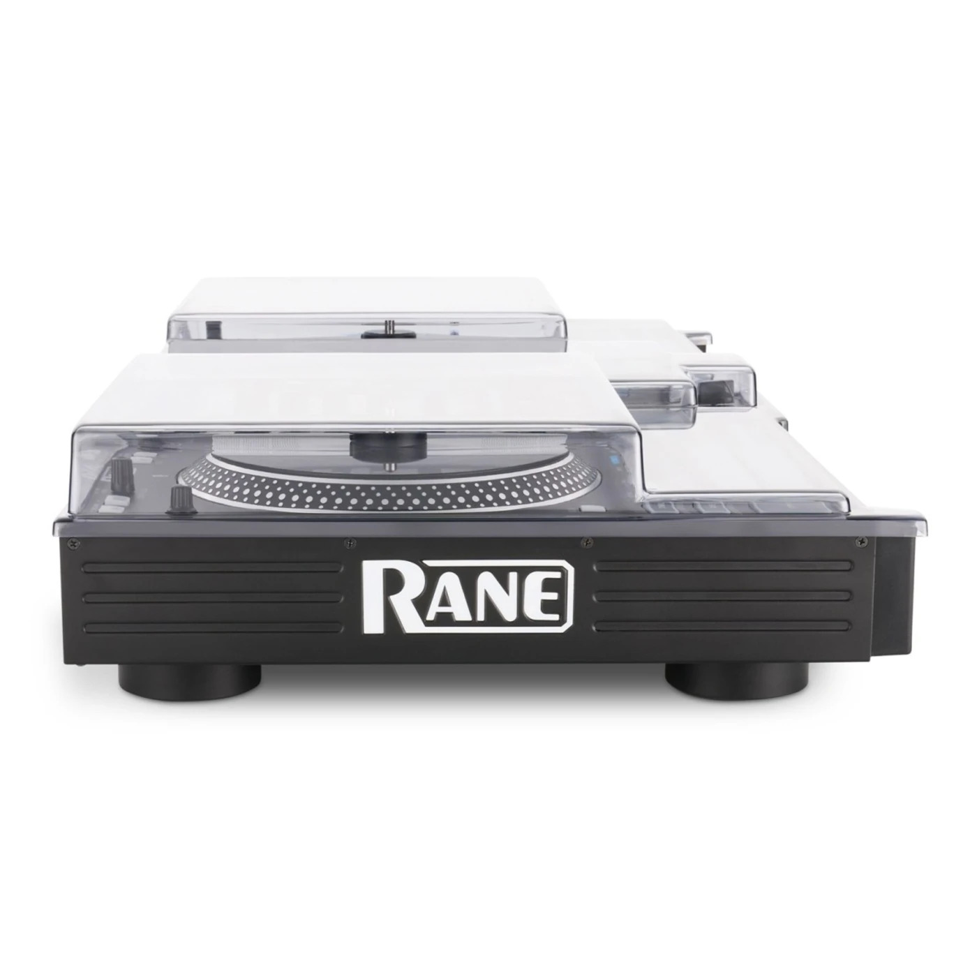 Precision-moulded from ultra-durable, smoked-clear polycarbonate, the Decksaver cover is engineered to fit the RANE SYSTEM ONE perfectly. It creates a tough, transparent shield that protects against dust, liquid spills, and accidental knocks—whether in the studio, the DJ booth, or in transit. Key performance components are fully safeguarded, including the motorised platters, central display, performance pads, faders, encoders, and the signature MAG Four crossfader section.