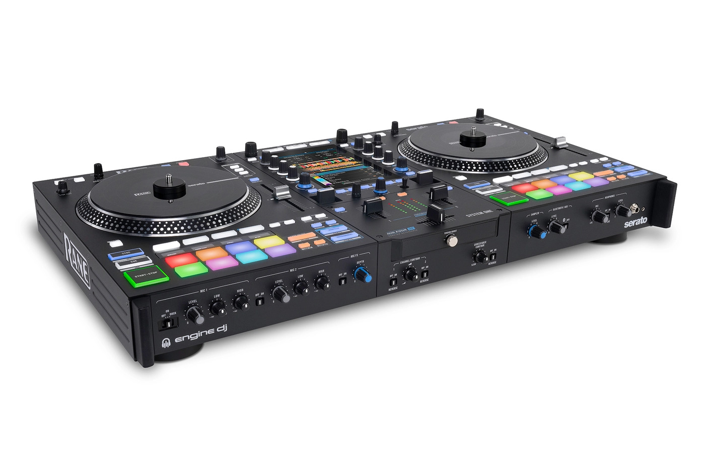 RANE SYSTEM ONE is the worlds first all-in-one standalone DJ system with motorised platters, blending the timeless feel of traditional turntables with the freedom of modern, laptop-free DJ technology.