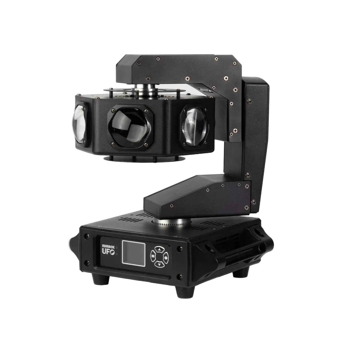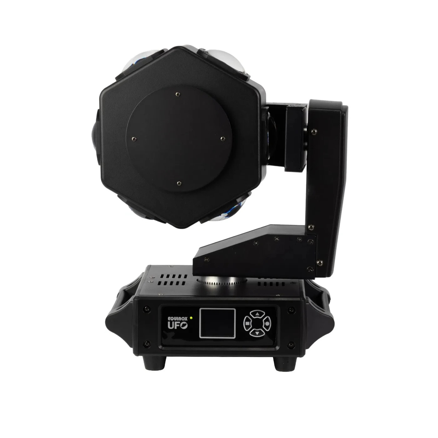 The Equinox UFO is a multi-beam moving head designed to deliver striking and dynamic visual effects. Its tight, razor-sharp RGBW beams generate rotating aerial patterns that sweep, rise, fall, and suspend dramatically in the air. Featuring a sleek, single-arm design, the fixture is compact, lightweight, and built for durability. Pre-programmed auto and sound-activated shows provide instant impact, while multiple units can be linked in primary/secondary mode for synchronised performance. Full DMX control is also available, offering limitless creative possibilities.