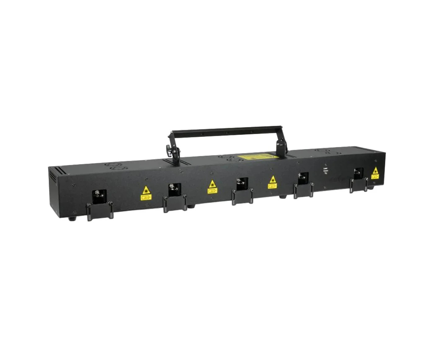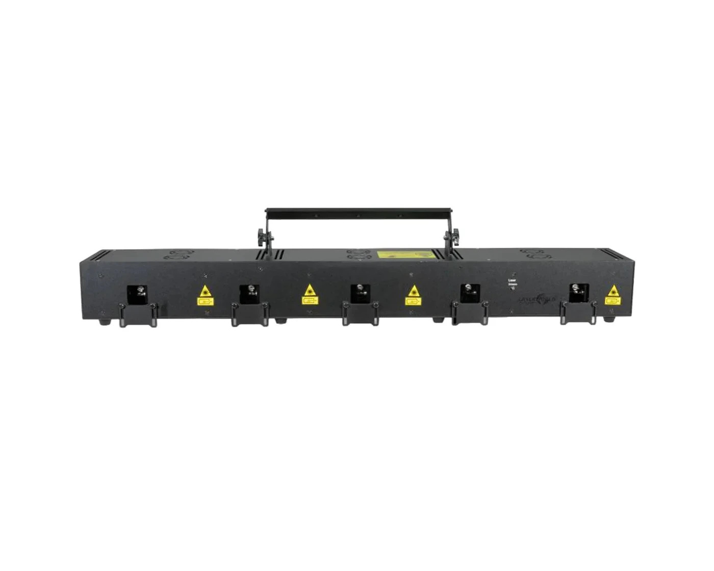 Each of the ten beam outputs features an independent X/Y scanner set, operating at 25 kpps @ 8°, allowing for precise and dynamic effects. In addition to single-beam projections, the unit includes over 100 pre-set patterns for versatile visual displays.