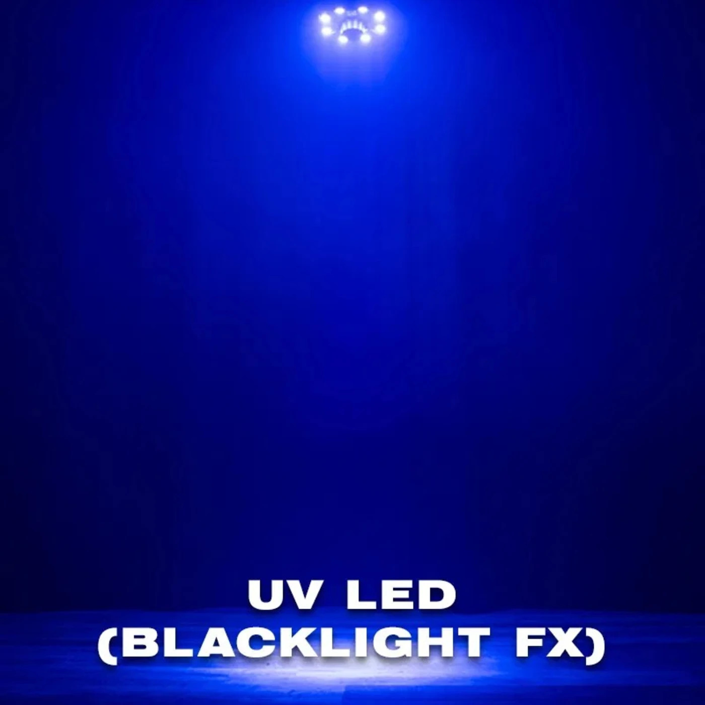 Lightweight at just 3.7 kg, the highly portable Furious Three RG UV is an excellent choice for mobile DJs, bands, event organisers, and entertainment venues seeking a compact yet powerful lighting solution. Small clubs, bars, and lounges can also enjoy its impressive versatility and vibrant effects at a budget-friendly price.