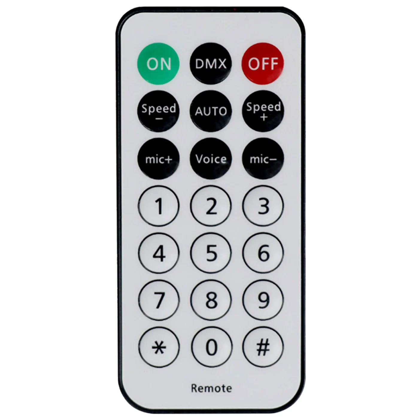 • Easy to control using either the buttons on the unit, the included RF remote control or 8 channel DMX