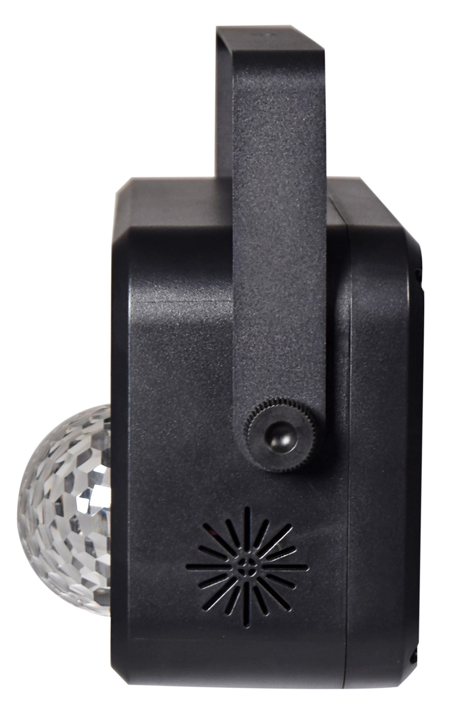 A lightweight 6-in-1 lighting effect that combines vibrant GOBO projections, a 10W RGBW magic ball, 4 white strobe/UV LEDs, 4 × 4W RGBW PAR LEDs, and a dual-colour laser into a single compact fixture. The unit is simple to operate, featuring built-in automatic programs and sound-to-light activation for effortless setup.