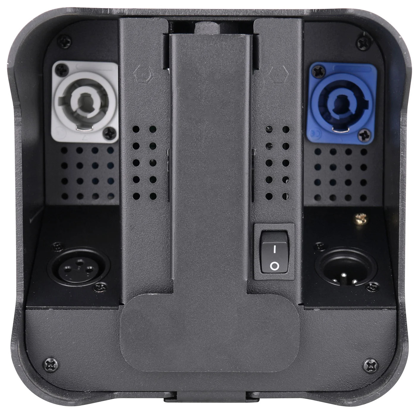 Power in/out (twist and lock), DMX in/out (3-pin XLR)