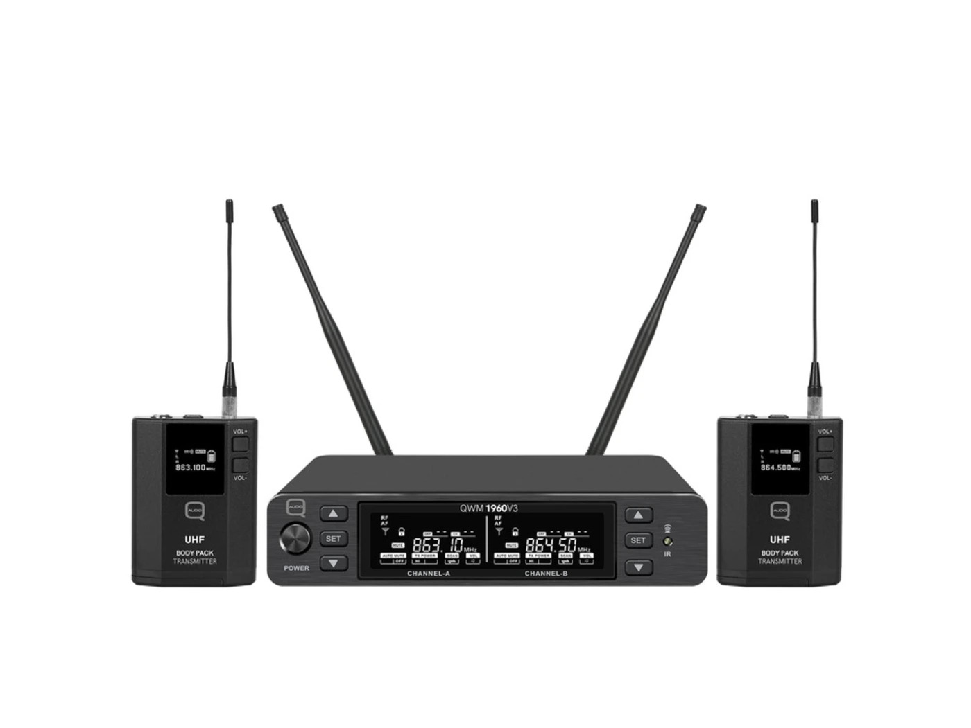 Operating within UK-approved UHF frequency bands, the system supports licence-free use on Channel 70 as well as licensed operation on Channel 38 for larger, more complex setups. Designed with durability and user convenience in mind, the QWM 1960 BP delivers professional-grade performance in a compact, adaptable package.