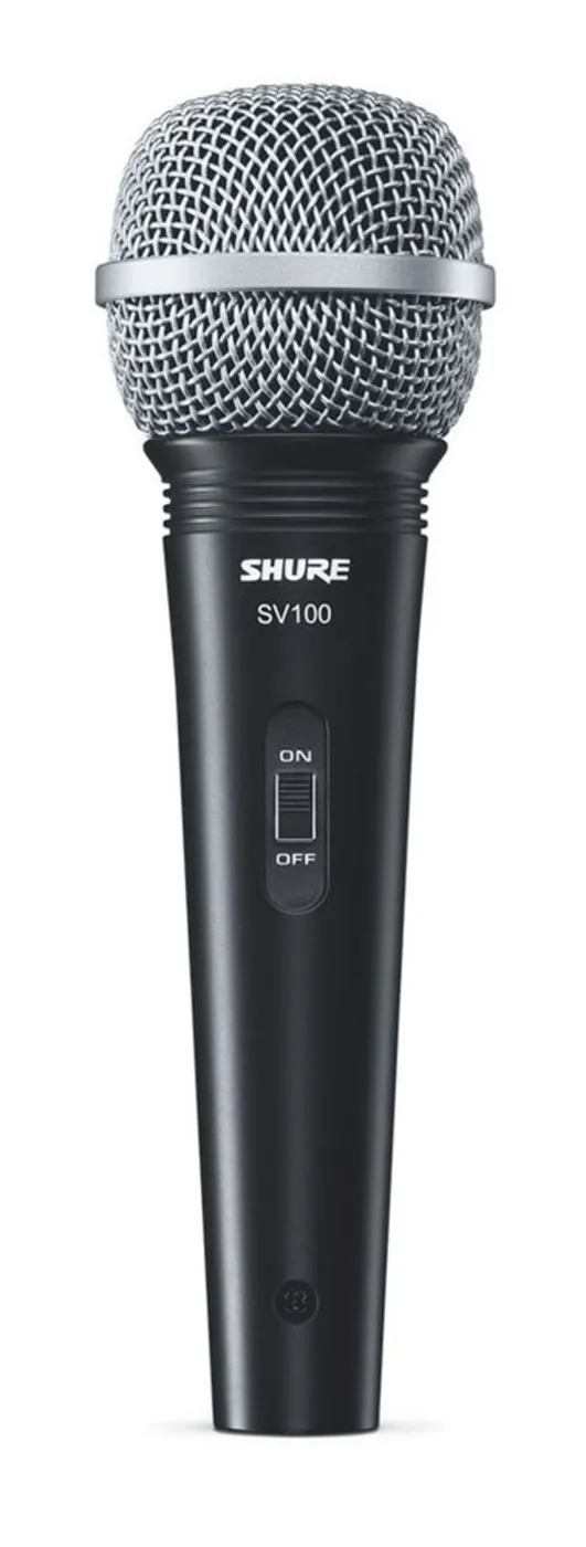 The Shure SV100 is a cardioid dynamic vocal microphone that is ideal for spoken word, karaoke, multimedia and instrument use.